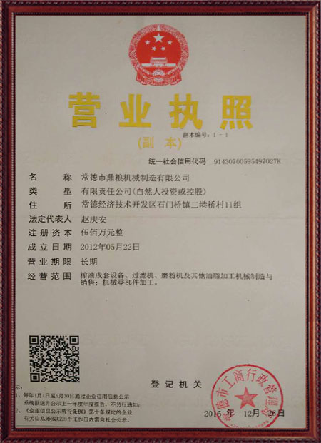 企業(yè)堅(jiān)持“質(zhì)量、口碑就是我們的生命”的原則,嚴(yán)格執(zhí)行質(zhì)量標(biāo)準(zhǔn)檢驗(yàn)體系。生產(chǎn)的"鼎糧"牌系列產(chǎn)品,產(chǎn)品質(zhì)量?jī)?yōu),性價(jià)比高,深受廣大新老客戶的青睞,通過了各級(jí)部門的鑒定認(rèn)可,立式、臥式液壓榨油機(jī)均榮獲農(nóng)機(jī)推廣證。